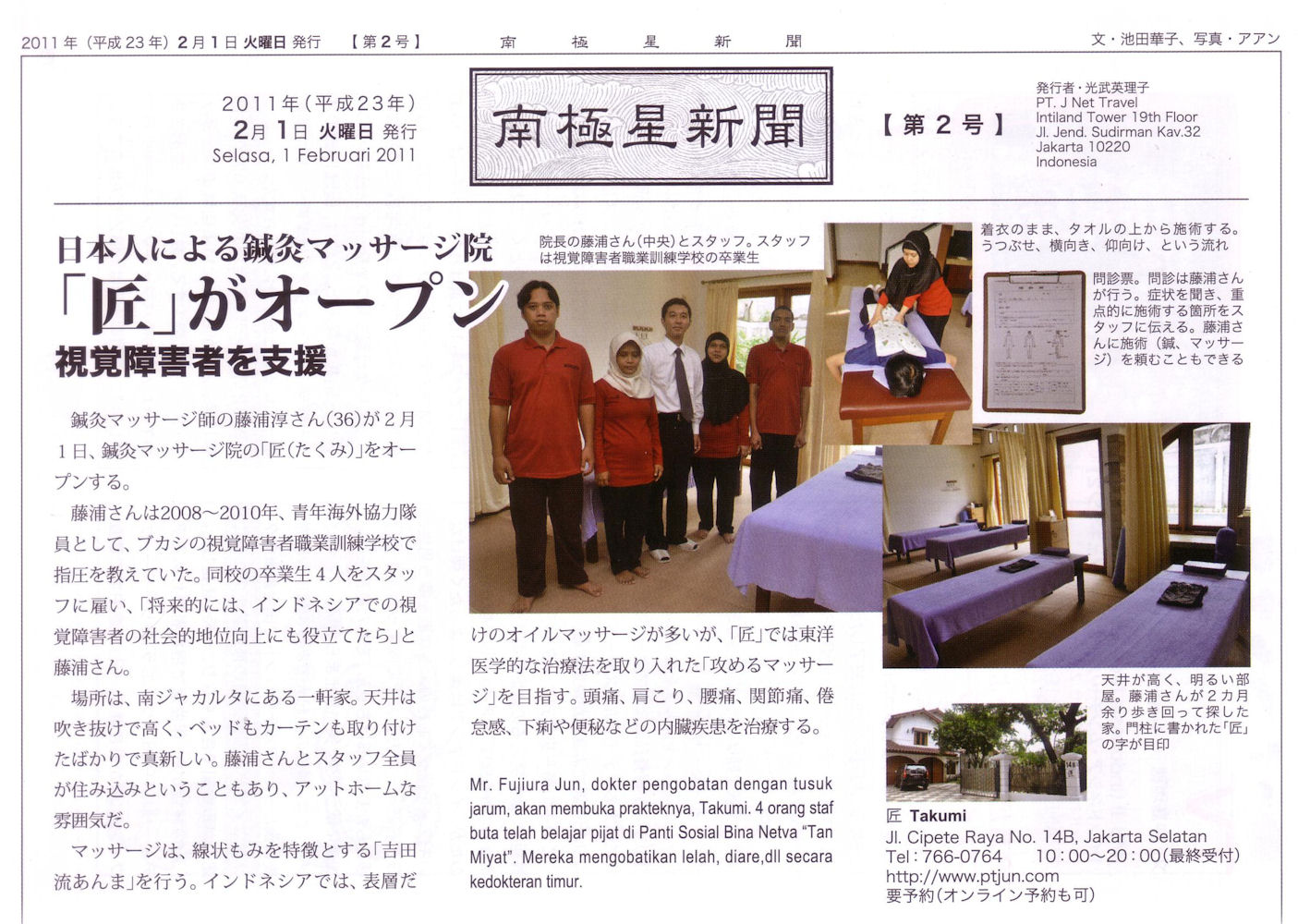 ジャカルタ月刊誌「南極星」さんに取材していただきました。記事はこちら。